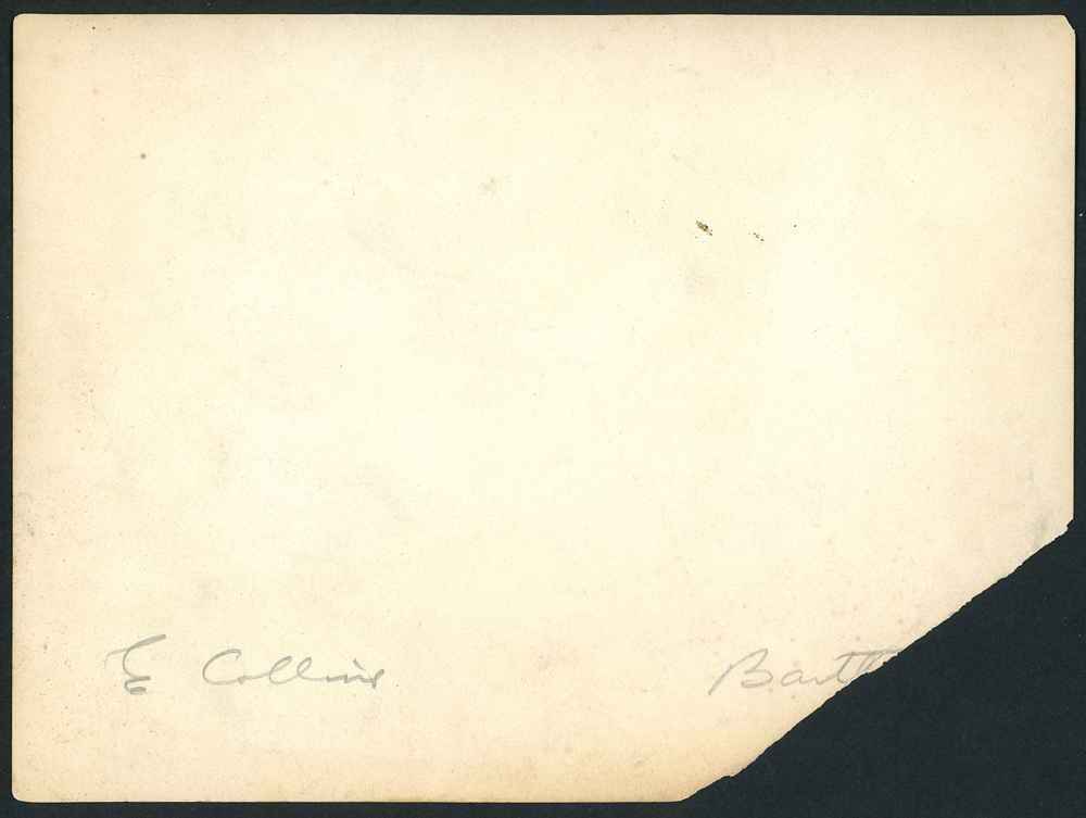 Bartley only played for Philadelphia in 1907, thus we can date this photo. The players are posed in front of the dugout at Columbia Park in Philadelphia. This may be the earliest photo of Hall of Famer Eddie Collins in the big leagues. The image is part of a recently discovered 1907 Philadelphia A’s portrait collection.