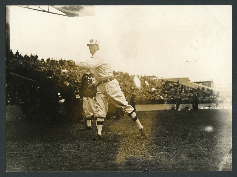 Eddie Plank warming up at Shibe Park in Philadelphia circa 1911.