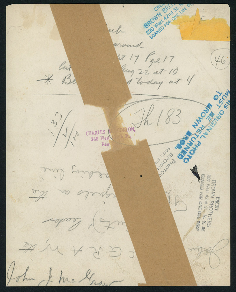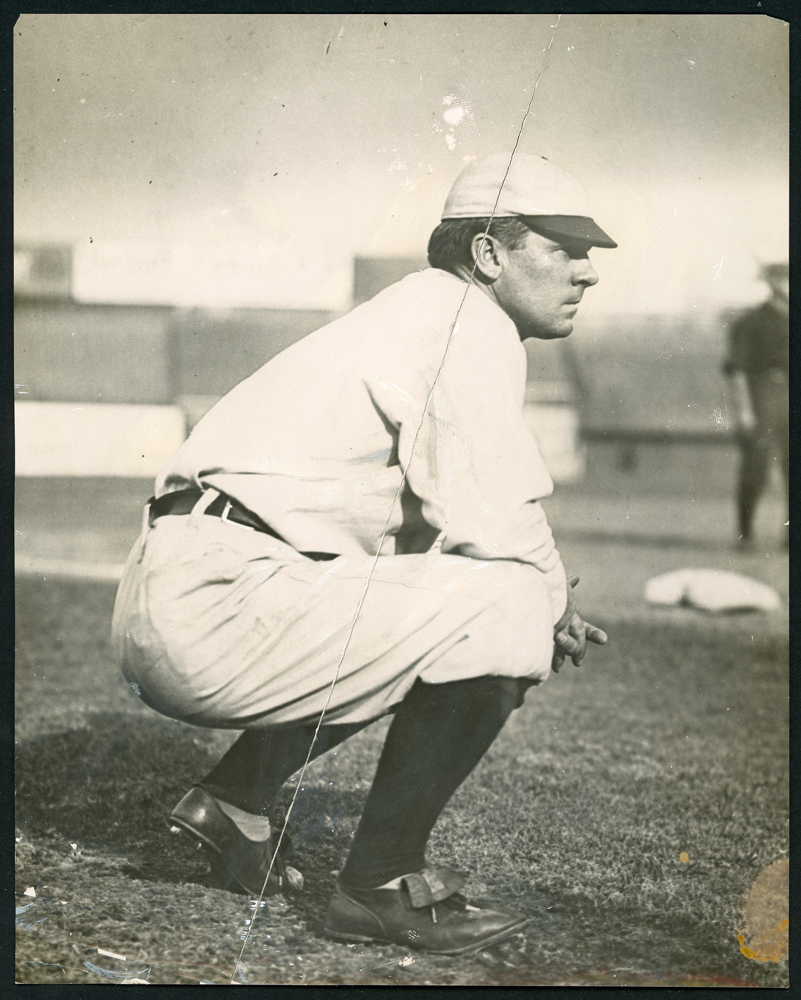 McGraw kneeling along the baseline. Famous image of McGraw by Charles M. Conlon.