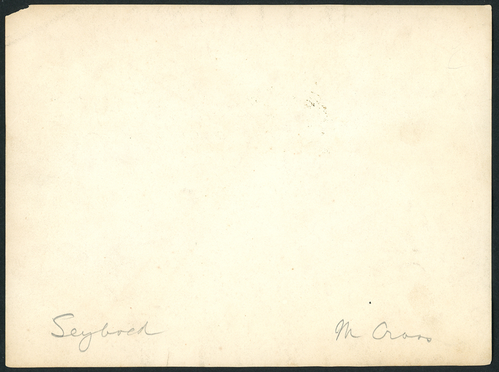 Monte Cross and Socks Seybold posed in front of the dugout at Columbia Park in Philadelphia. This image is part of a collection of newly discovered 1907 Philadelphia A’s portraits.