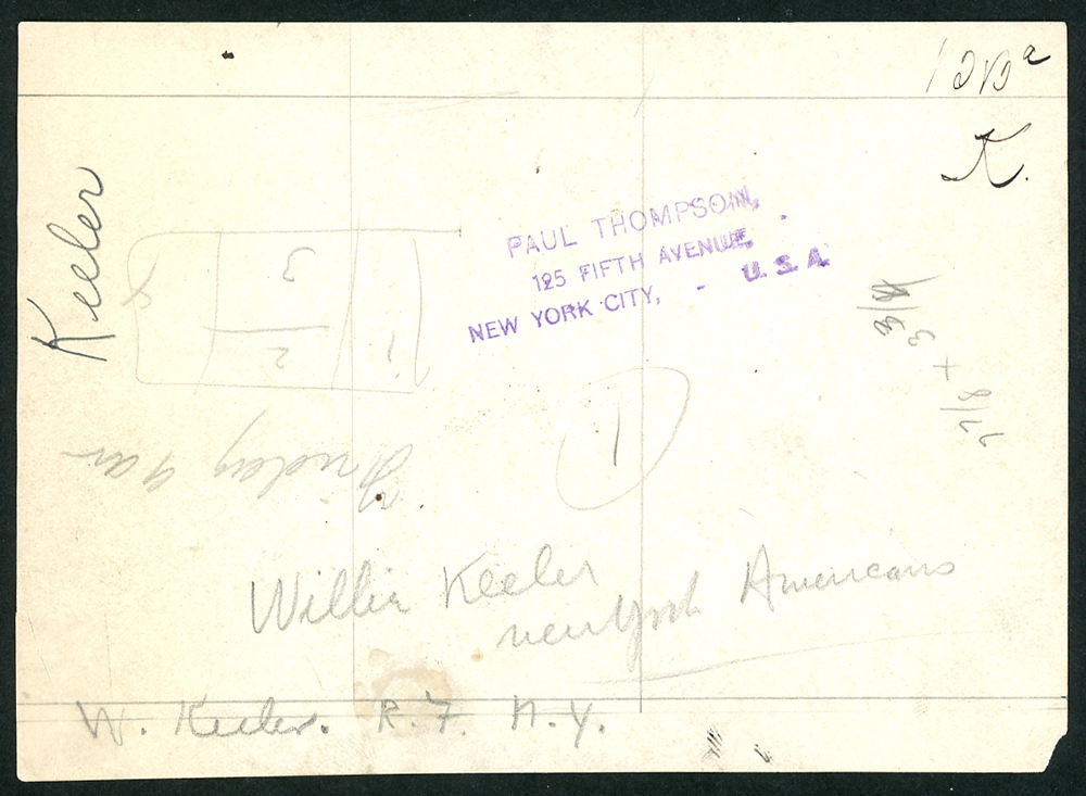 Willie Keeler image distributed by Paul Thompson’s The Article Syndicate. It is likely a Pictorial News photo later acquired by Thompson’s agency. Keeler appears to be flinching from an inside pitch during batting practice.